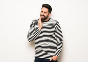 – dłoniową część połóż na brodzie. Płynnym i powolnym ruchem pociągnij żuchwę w dół, tak aby odczuć delikatne rozciąganie w okolicy mięśni żwaczy. Ćwiczenie powtórz 10 razy.